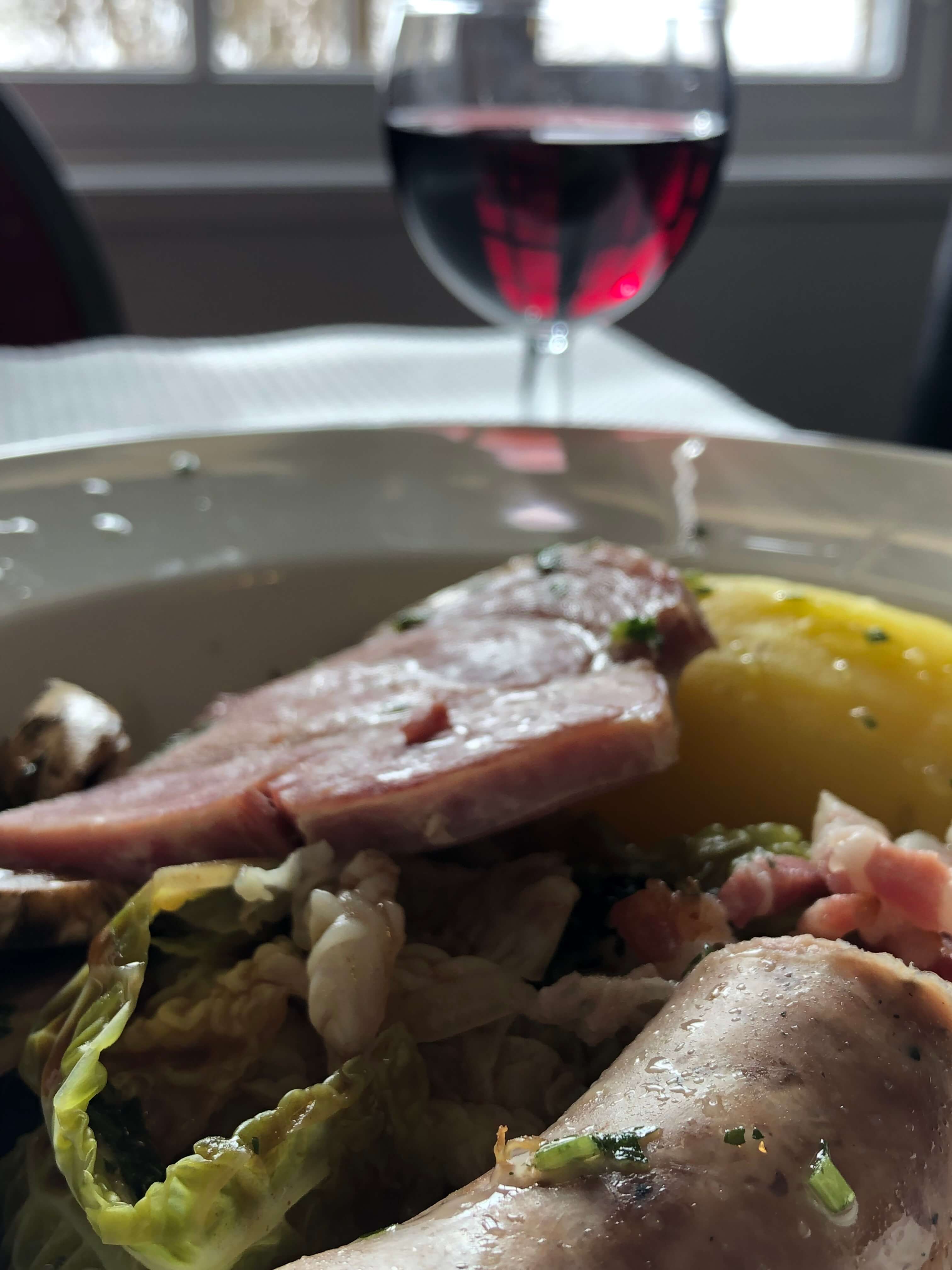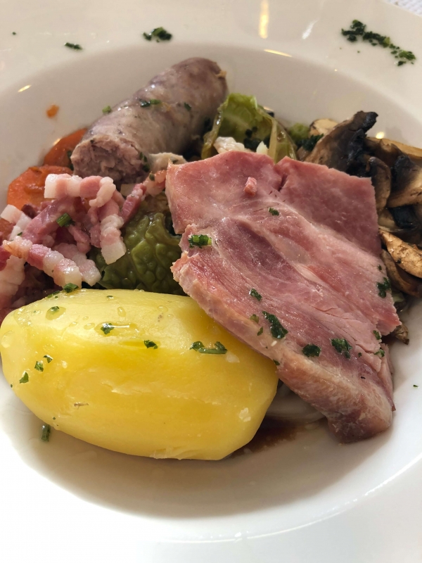 On propose le feuilleté d’escargots d’Yssingeaux au bleu d’Auvergne, également une potée vigneronne revisitée, avec une sauce vigneronne, du chou, des pommes de terre, et de la charcuterie de la région.