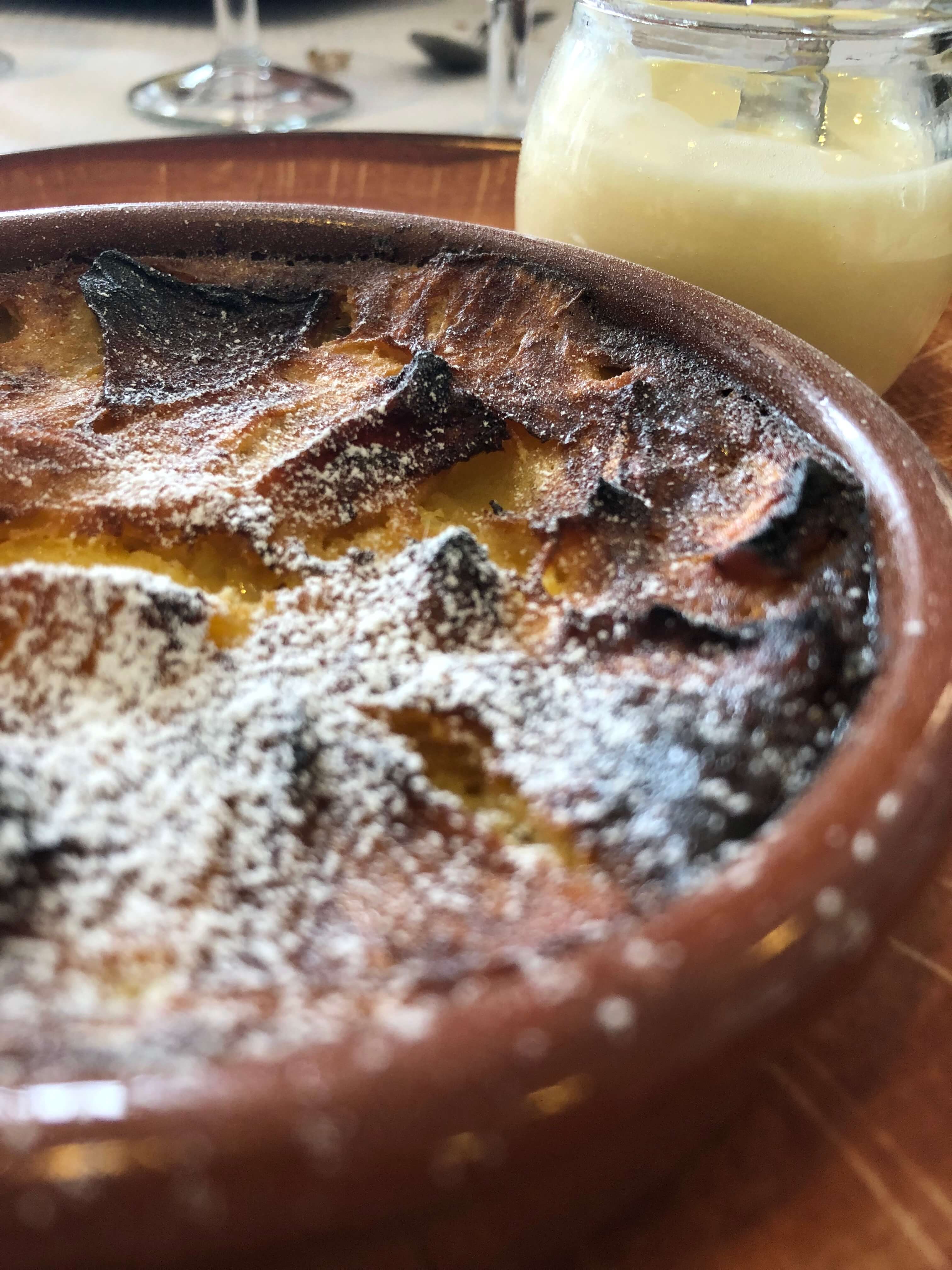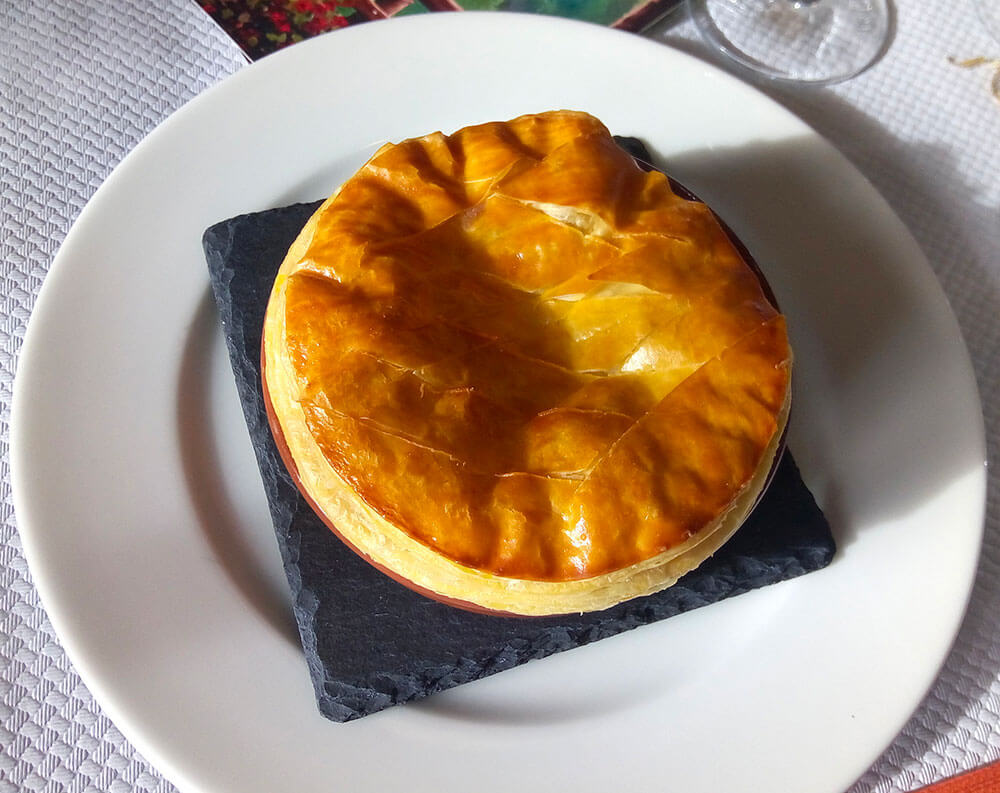 On propose aussi la volaille du Velay Label Rouge avec un parmentier gourmand, avec une galette de Cantal, et une sauce à la crème. Il y a aussi la terrine maison, et je travaille beaucoup avec les pommes du Pilat pour les desserts. Je fais des tartes gourmandes, le clafouti que l’on appelle la « Flognarde » ici.